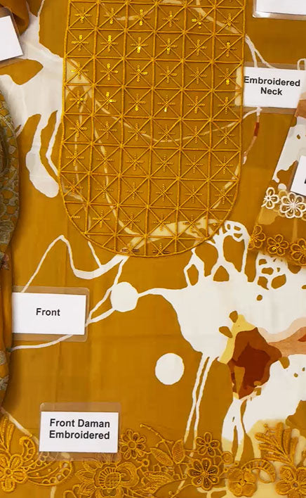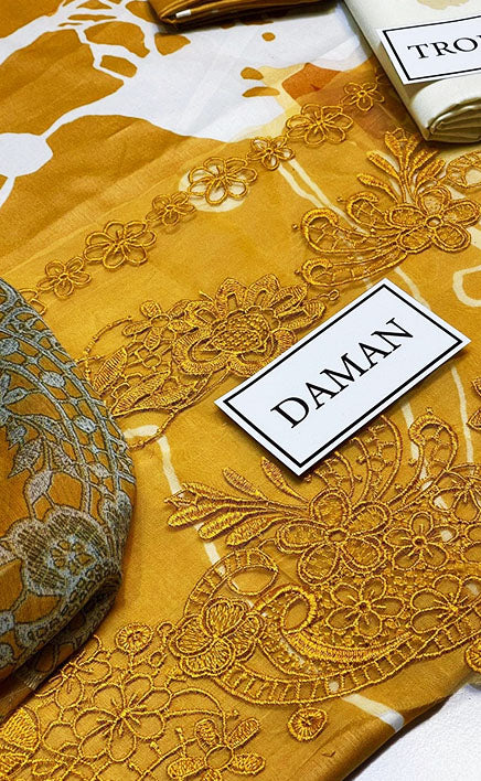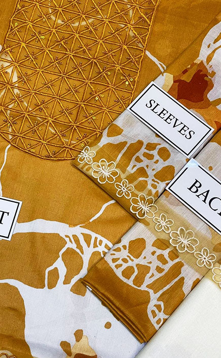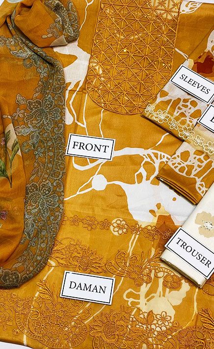 3-piece Unstitched Printed Lawn Embroidered Patch Work Dress for Women’s